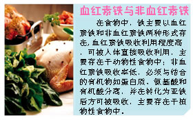 提高膳食铁的生物利用率也是避免铁缺乏的方法之一。在以植物性食物为主的膳食中所含铁的总量不低,但由于植物性食物中的铁以非血红素铁为主,吸收率极低,因此,注意食物的合理搭配,提高铁的生物利用率尤为重要。在为孩子选择含铁的植物性食物时,应同时让孩子食用富含维生素C的蔬菜、水果,如酸枣、杏、番石榴、柑橘、柚子、西红柿等,以促进非血红素铁的吸收。富含B族维生素、维生素A、β-胡萝卜素和维生素E的食物也有利于提高铁的生物利用率或促进血红蛋白的合成。