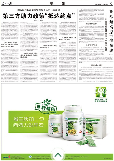 针对市场上关于纽崔莱蛋白粉原料的谣言,公司于9月1日在《人民日报》刊登广告,向社会公众广而告之纽崔莱蛋白粉“非转基因”。